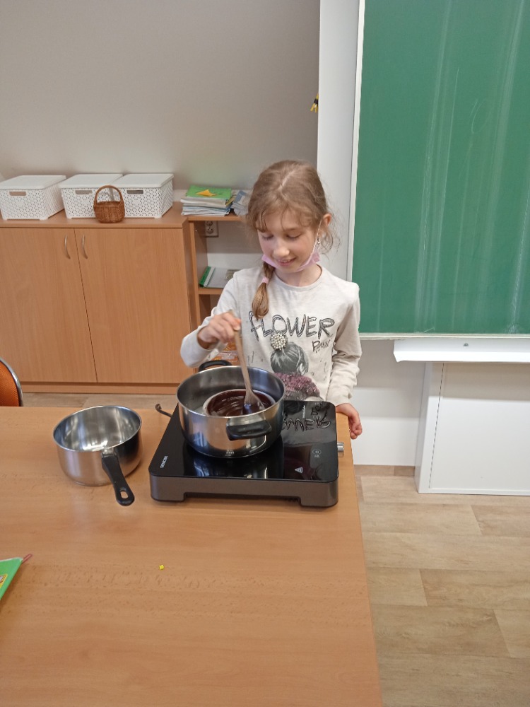 A tak si děti „Čokoládový den“ plný podmanivých vůní, chutí i tvoření opravdu ve školní družině užily.  Na závěr si při čtení a poslechu napínavého příběhu na pokračování na vlastnoručně vyrobených čokoládových laskominách pochutnaly.