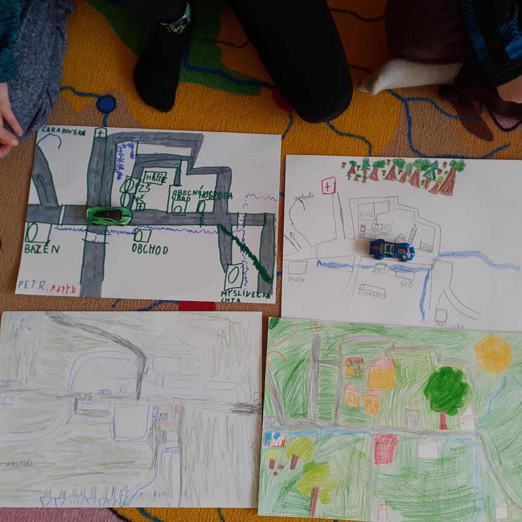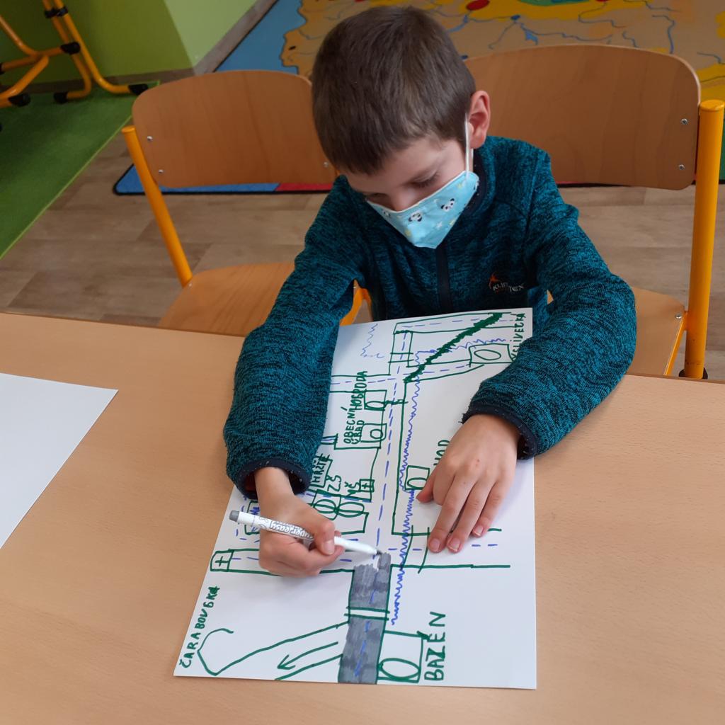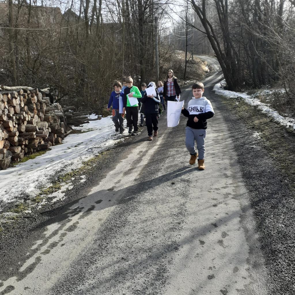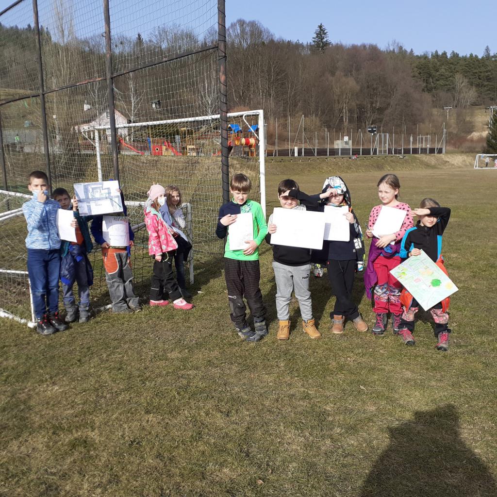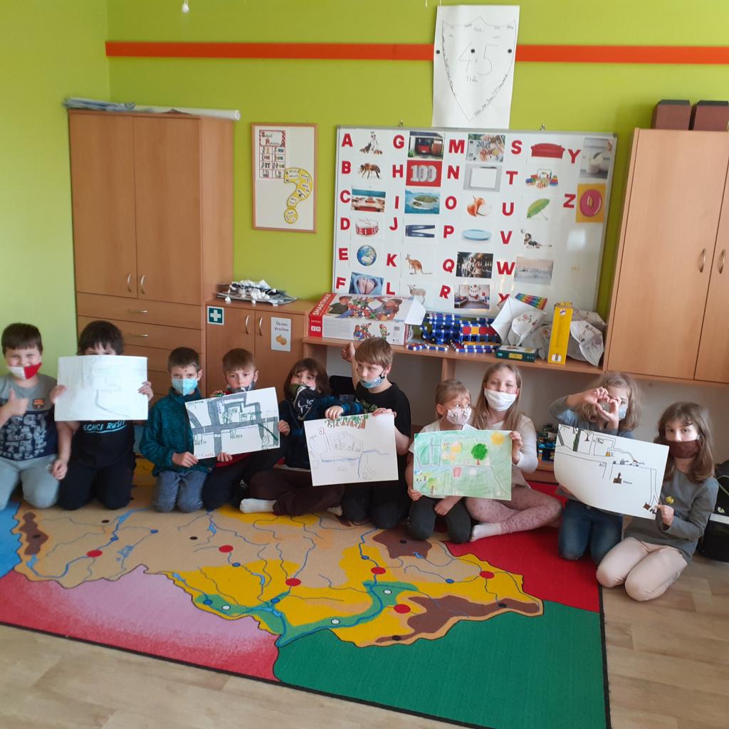 "Místo, kde žijeme" - to byl název našeho projektového týdnu. Povídali jsme si o naší obci, o našem domově. Na koberci v kroužku jsme pomocí kartiček určovali výhody a nevýhody života ve městě a na vesnici. Bavili jsme se také o tom, kde bychom raději bydleli. Vesnice byla jasná volba. Významnou součástí našeho projektu byl nákres mapy, na které jsme znázornili důležitá místa v obci. Děti pracovaly ve dvojicích a každý si připravil svou mapu tak, aby se v ní uměl dobře orientovat. Následující den jsme plnili orientační stezku. Podle mapy jsme se vydali na výpravu napříč obcí. Děti měly za úkol vyřešit 30 úloh a otázek, které přímo souvisely s místy, které jsme cestou potkávali. Teď už například víme, jaká dopravní značka stojí před místním pohostinstvím, kolik má myslivecká chata oken, z jakého materiálu je postavena zvonička, kolik kroků měří fotbalové hřiště nebo zda je na obecním úřadě vyvěšena vlajka. Hravou formou jsme poznávali místo, kde žijeme, a zároveň jsme trénovali práci s mapou a porozumění textu. Závěrem jsme si náš orienťák společně vyhodnotili a děti byly za svou úspěšnou práci odměněny sladkostí a pochvalou.