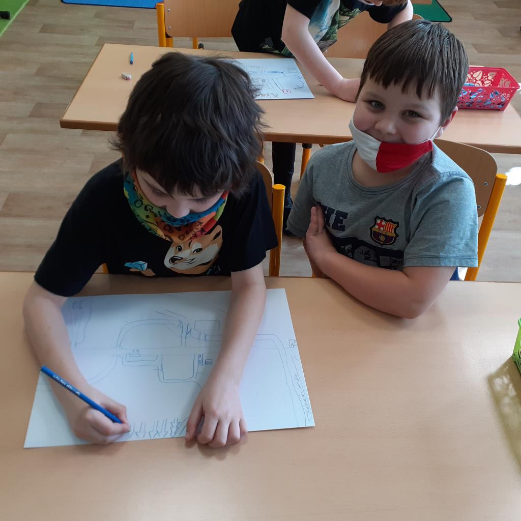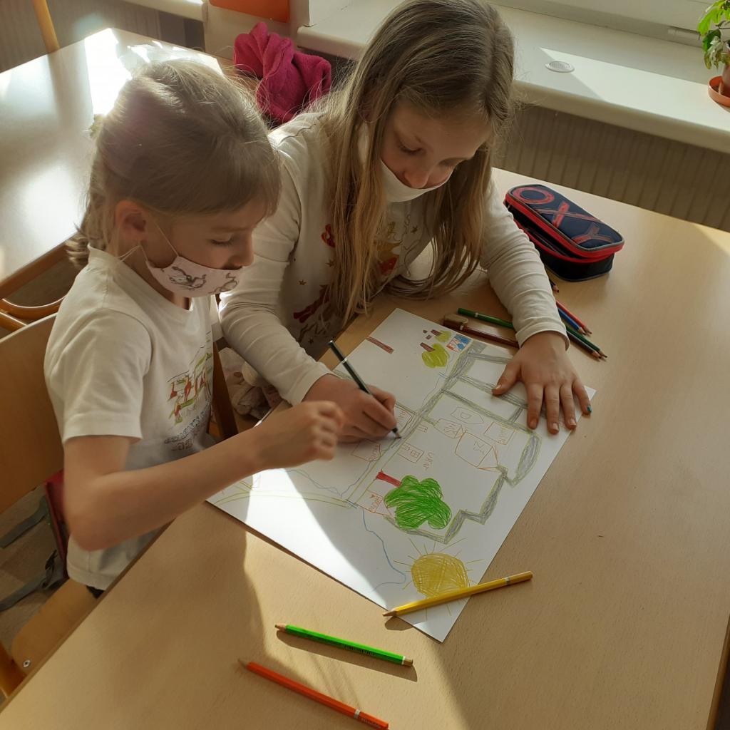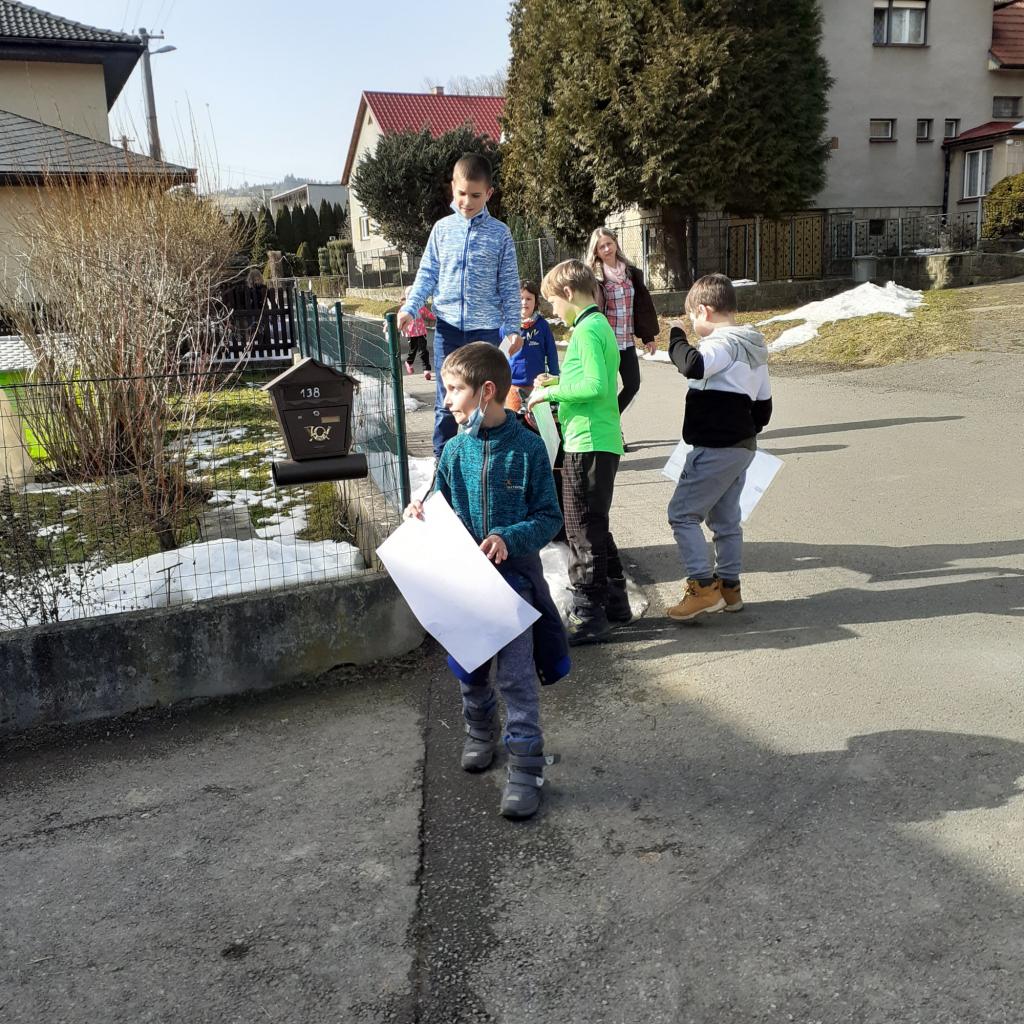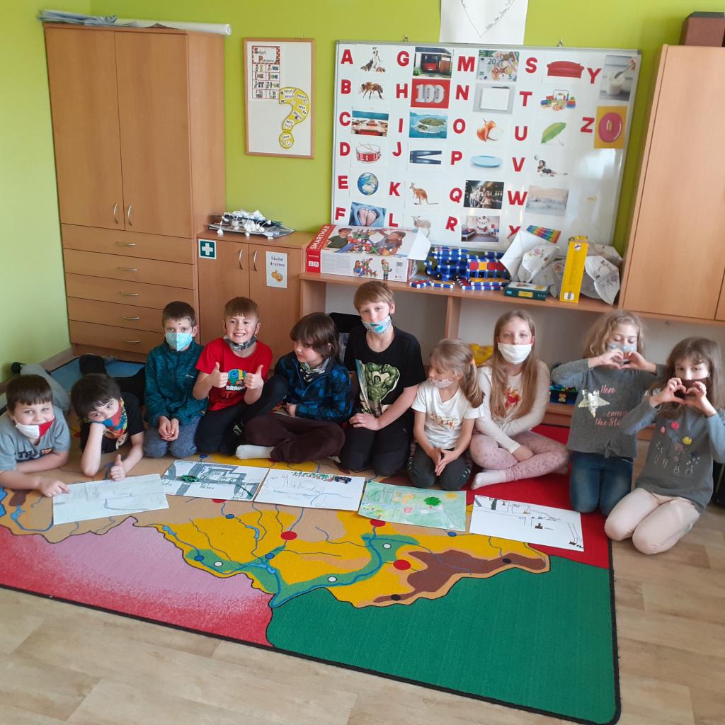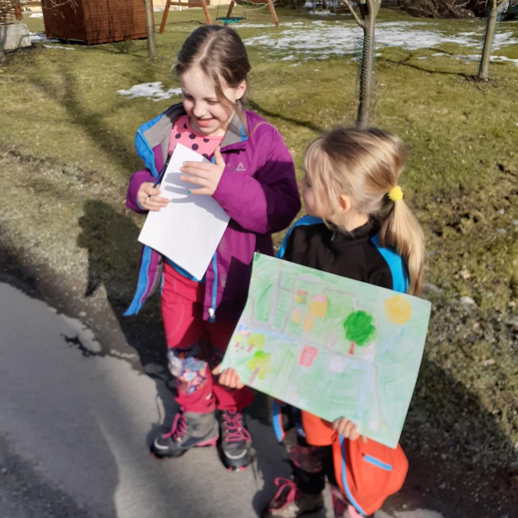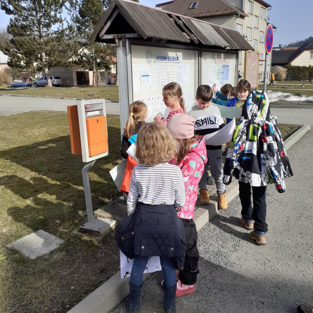 "Místo, kde žijeme" - to byl název našeho projektového týdnu. Povídali jsme si o naší obci, o našem domově. Na koberci v kroužku jsme pomocí kartiček určovali výhody a nevýhody života ve městě a na vesnici. Bavili jsme se také o tom, kde bychom raději bydleli. Vesnice byla jasná volba. Významnou součástí našeho projektu byl nákres mapy, na které jsme znázornili důležitá místa v obci. Děti pracovaly ve dvojicích a každý si připravil svou mapu tak, aby se v ní uměl dobře orientovat. Následující den jsme plnili orientační stezku. Podle mapy jsme se vydali na výpravu napříč obcí. Děti měly za úkol vyřešit 30 úloh a otázek, které přímo souvisely s místy, které jsme cestou potkávali. Teď už například víme, jaká dopravní značka stojí před místním pohostinstvím, kolik má myslivecká chata oken, z jakého materiálu je postavena zvonička, kolik kroků měří fotbalové hřiště nebo zda je na obecním úřadě vyvěšena vlajka. Hravou formou jsme poznávali místo, kde žijeme, a zároveň jsme trénovali práci s mapou a porozumění textu. Závěrem jsme si náš orienťák společně vyhodnotili a děti byly za svou úspěšnou práci odměněny sladkostí a pochvalou.