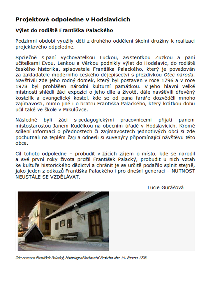 Základní škola a Mateřská škola Mikulůvka, okres Vsetín je školou malotřídní, se třemi třídami a pěti ročníky. Nachází se v klidné části uprostřed obce, v pěkném přírodním prostředí. Poskytuje vzdělávání pro žáky nejen z obce Mikulůvka a Oznice. Naše malotřídní škola nabízí dětem klidné a podnětné prostředí, v němž slova přátelství, tolerance, štěstí, porozumění… jsou samozřejmostí. Malý kolektiv a užší provázanost mezi dětmi i dospělými nabízí širší možnosti pro individuální přístup ke všem žákům, vzájemnou spolupráci i komunikaci.