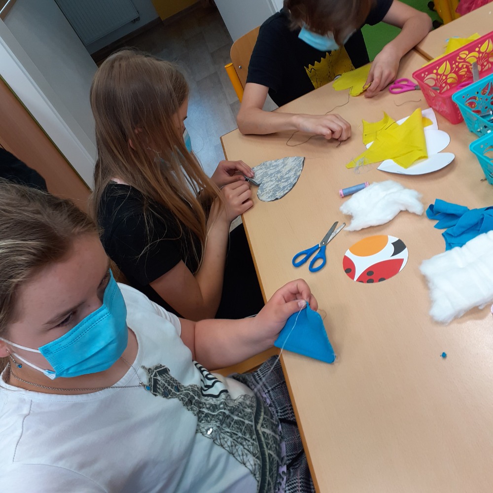 Za starých časů,  kdy lidé byli odkázáni na dovednosti svých rukou, existovalo velké množství řemesel a povolání. V družině jsme si povídali o nejrůznějších lidových řemeslech. Některé již zcela zanikly a my je známe jen ze starých příběhů, pohádek či písniček. V rámci našeho řemeslného týdne jsme s družinou navštívili místního dřevořezbáře pana Zimka. Seznámil nás s jeho prací, technikou i nářadím. Beseda s řemeslníkem byla velmi zajímavá a jeho výrobky se nám moc líbily. V družině jsme si udělali šicí dílnu a vytvářeli jsme  jehelníčky. Mladší děti šily roztomilé kočičky, starší žáci zase srdíčka a  další tvary. Na to, že většina dětí šila úplně poprvé, se jim práce krásně povedla. Volný čas jsme v průběhu týdne trávili  v přírodě poznáváním rostlin nebo krmením oveček.