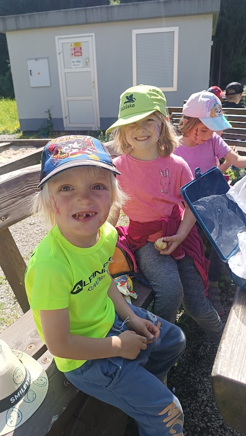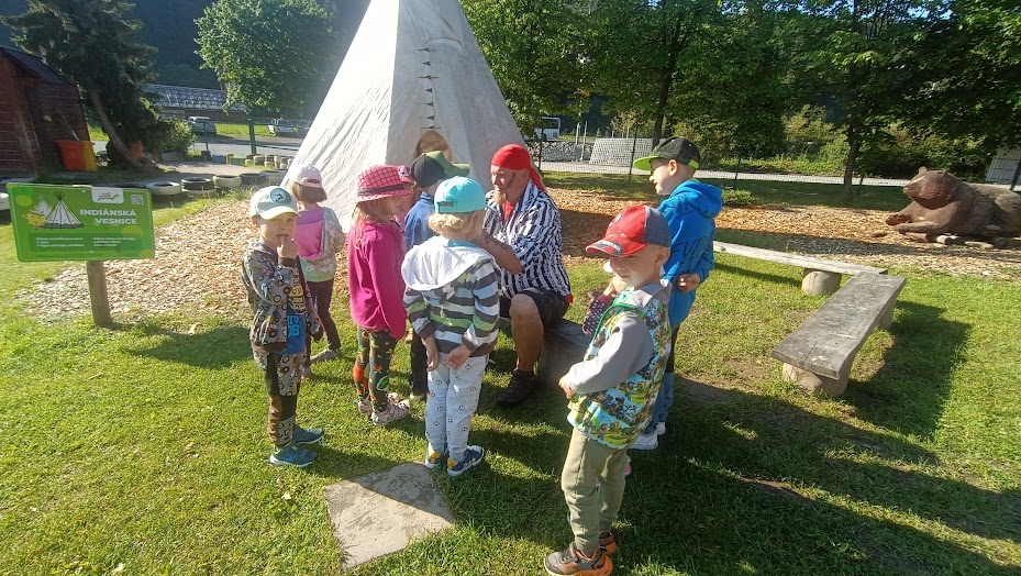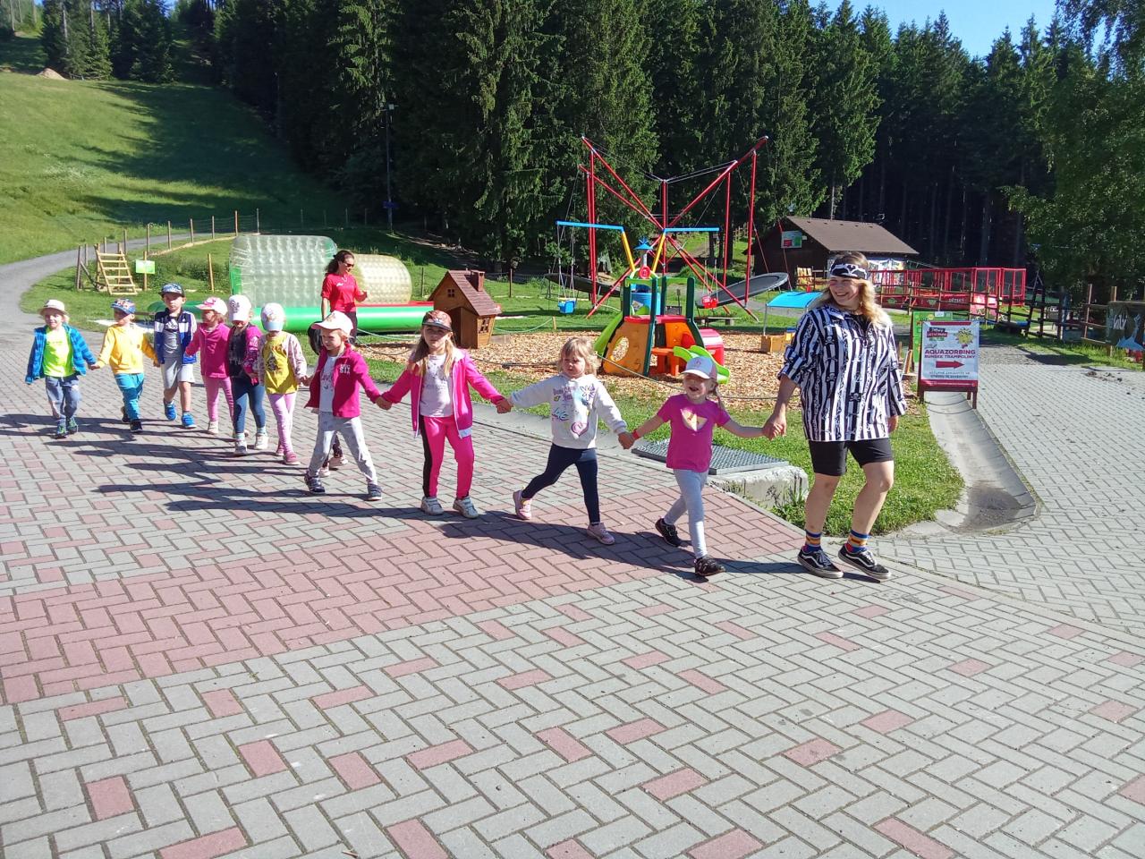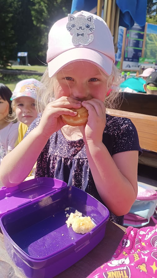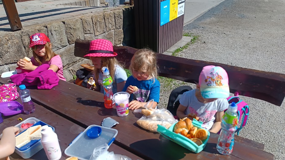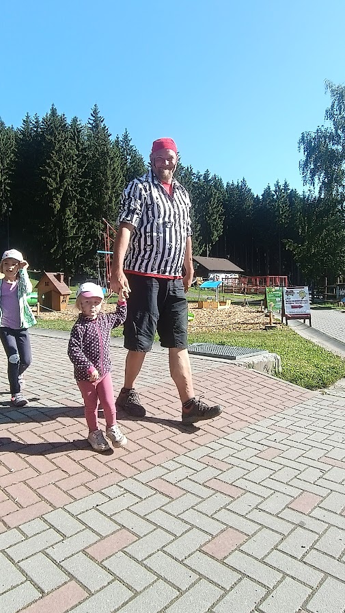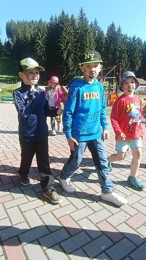 Společně jsme vyrazili na výlet na Bílou, kde nás čekal bohatý program s názvem "Vzhůru na plavbu". Program zahrnoval jízdu v lodičkách, skákání na trampolíně, návštěvu lesního lanáčku, hledání tajemného pokladu, kreslení námořnických vlajek a návštěvu skákací lodě a mnoho dalšího.