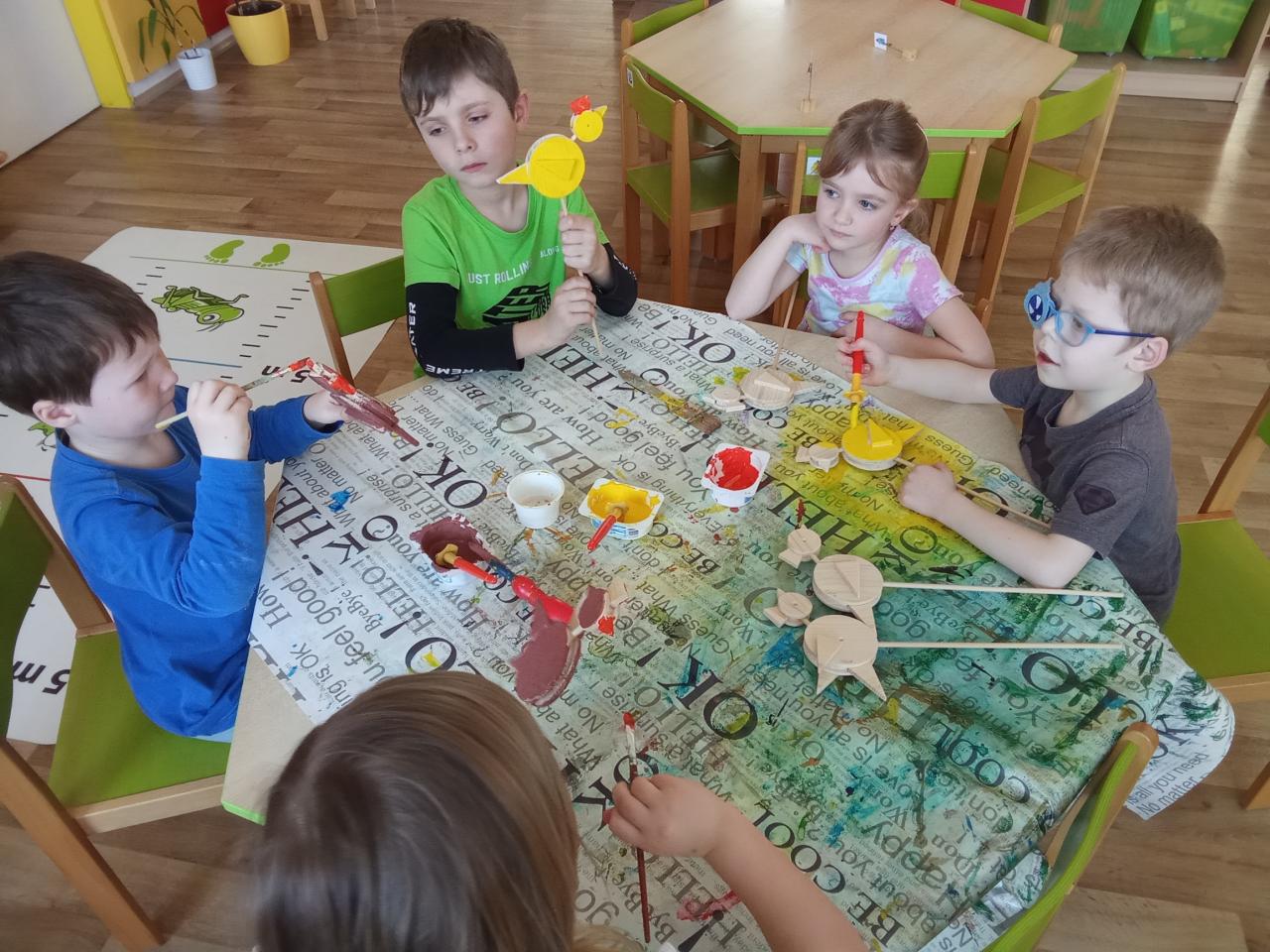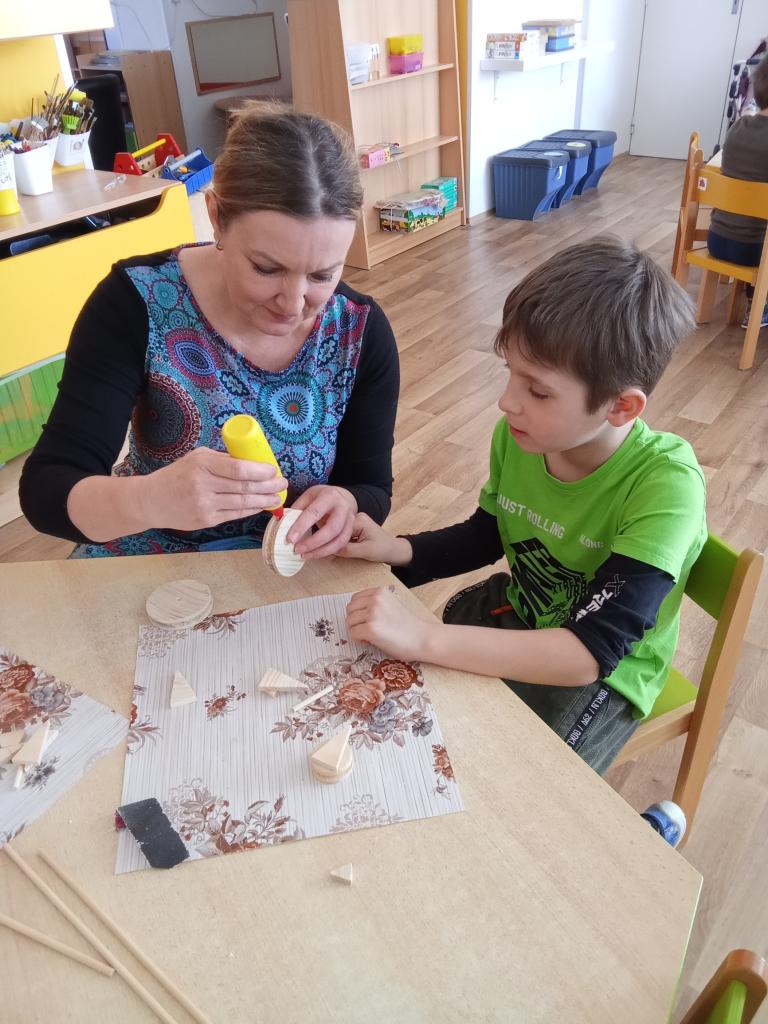 Vyzkoušeli jsme si práci se dřevem, brousili jsme, lepili, sestavovali kuřátko k Velikonocům a pro radost "káču".