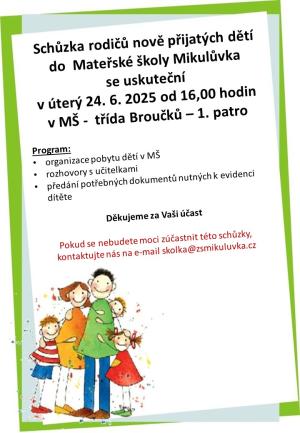 Zveme rodiče na informační schůzku k zahájení školního roku 2025–2026.