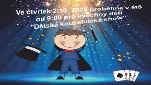 Dne 2. 10. v 9:00 k nám do mateřské školy zavítá kouzelník! Děti čeká kouzelné dopoledne plné zábavy a překvapení.