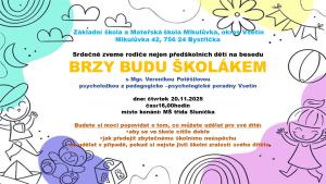 Beseda pro rodiče s psycholožkou Mgr. V. Potěšilovou nejen o školní zralosti