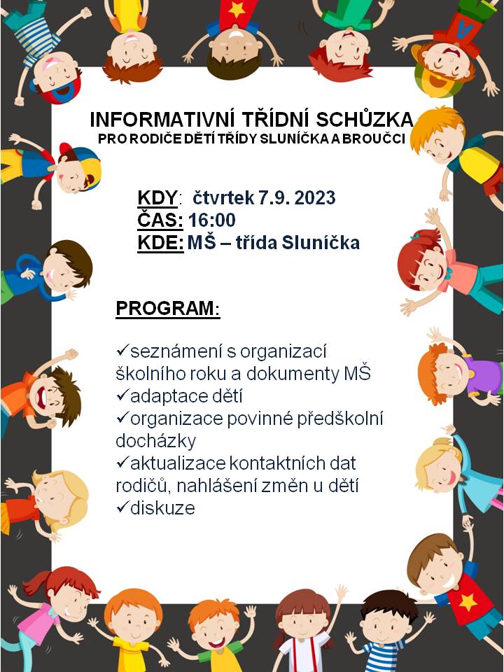INFORMATIVNÍ TŘÍDNÍ SCHŮZKA PRO RODIČE DĚTÍ TŘÍDY SLUNÍČKA A BROUČCI