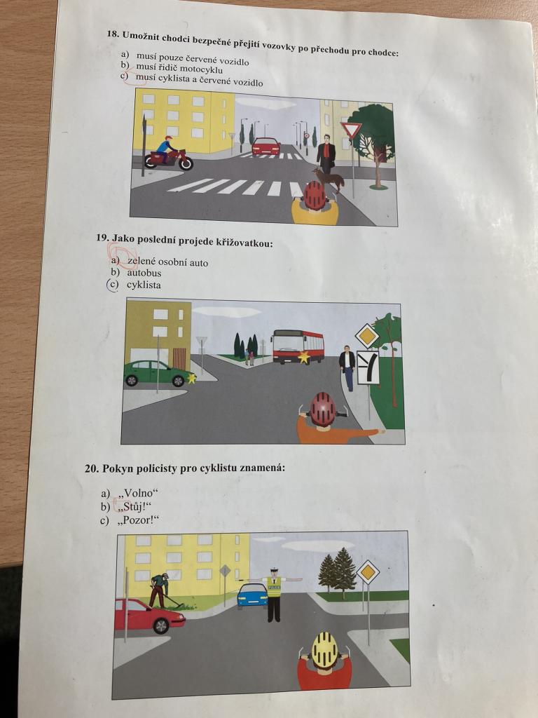 I když nám nevyšlo pěkné počasí, tak se žáci aktivně připravovali na teoretickou i praktickou zkoušku z dopravních předpisů. Ta je čeká v příštím termínu (23. května) a můžou za ni získat řidičský průkaz na kolo. Teď nás čeká už jenom trénink, aby vše dobře dopadlo.
