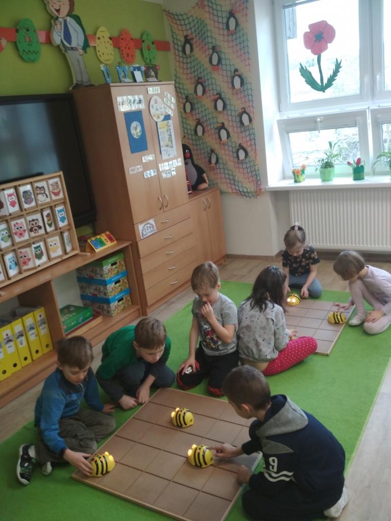 Zkrátka, taková ŠKOLA HROU. V tělesné výchově jsme cvičili s hudbou. Svižné a rytmické tempo nám pomohlo rozehřát a rozpohybovat celé tělo a klidná, relaxační hudba nás potom uvedla do stavu odpočinku a úplného uvolnění. Matematika získala dnes z celého dne nejvíc „smajlíků“ od dětí. Proč? Ve třídě se objevilo 6 včelích Bee Botů a my objevovali základy programování podle zadané cesty. Stavěli jsme Bee Botům překážky a měli jsme obrovskou radost, když „včelka“ dorazila do cíle. Nejraději bychom u toho strávili celý den. V českém jazyce jsme pracovali s kartičkami a určovali, kde se zadané písmenko nachází. Hra se jmenovala: „Najdi mě“. Dětem se celý den náramně líbil a jistě si ho všichni rádi zase zopakujeme.