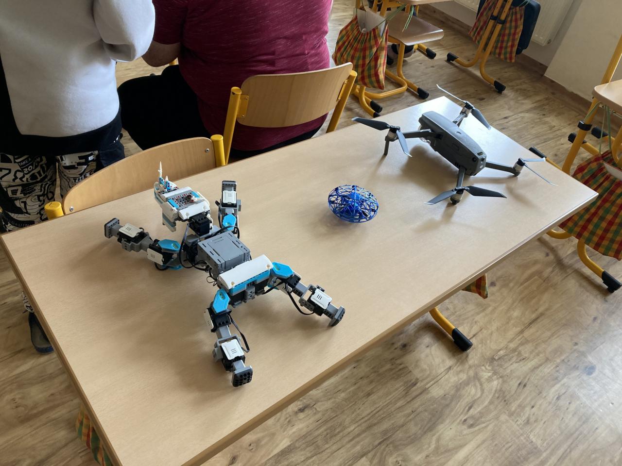 Dne 2. května nás v kroužku Robotika přišel navštívit tatínek od Klárky, pan Stavinoha, který nám přinesl na ukázku různé robotické hračky, drony, a dokonce i 3D tiskárnu, na které jsme si vyrobili mince s našimi iniciály.