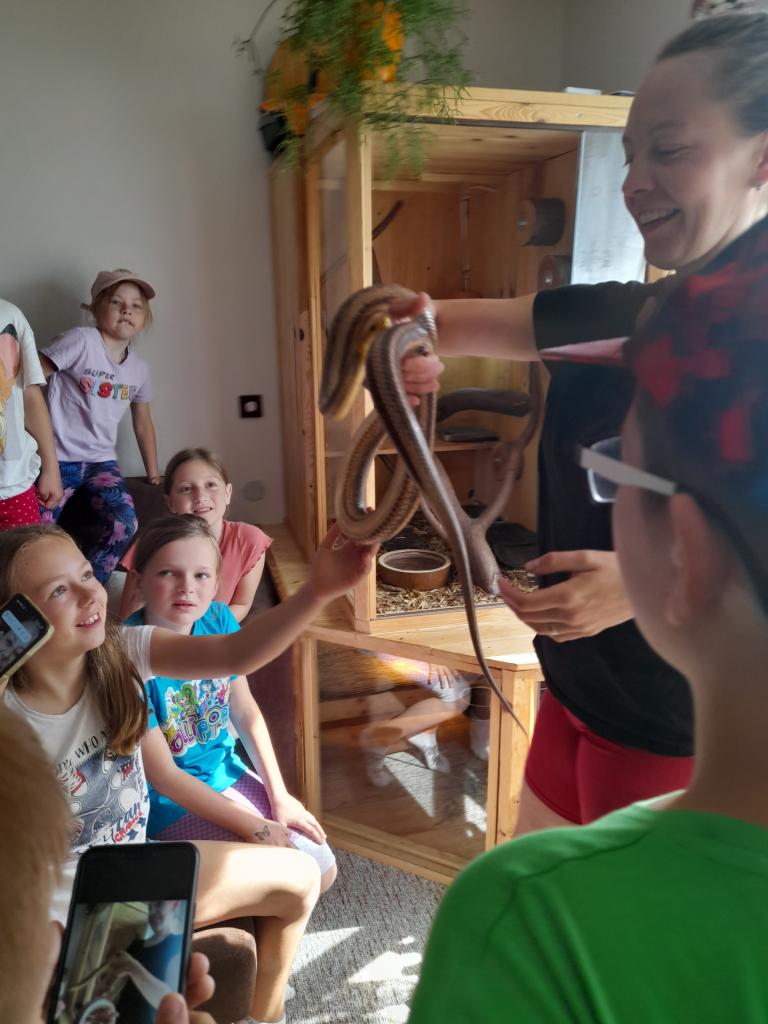 Děti zde mohly obdivovat domácí, hospodářská i terarijní zvířátka, s kterými se mohly pomazlit, pohrát nebo je nakrmit. Nakonec dorazil na statek pan řezbář Milan, který dětem předvedl krásnou ruční práci a své vyřezávané výrobky. Dětí si odnesly i malý dáreček. Všichni byli spokojeni a na statek se určitě zase podíváme.