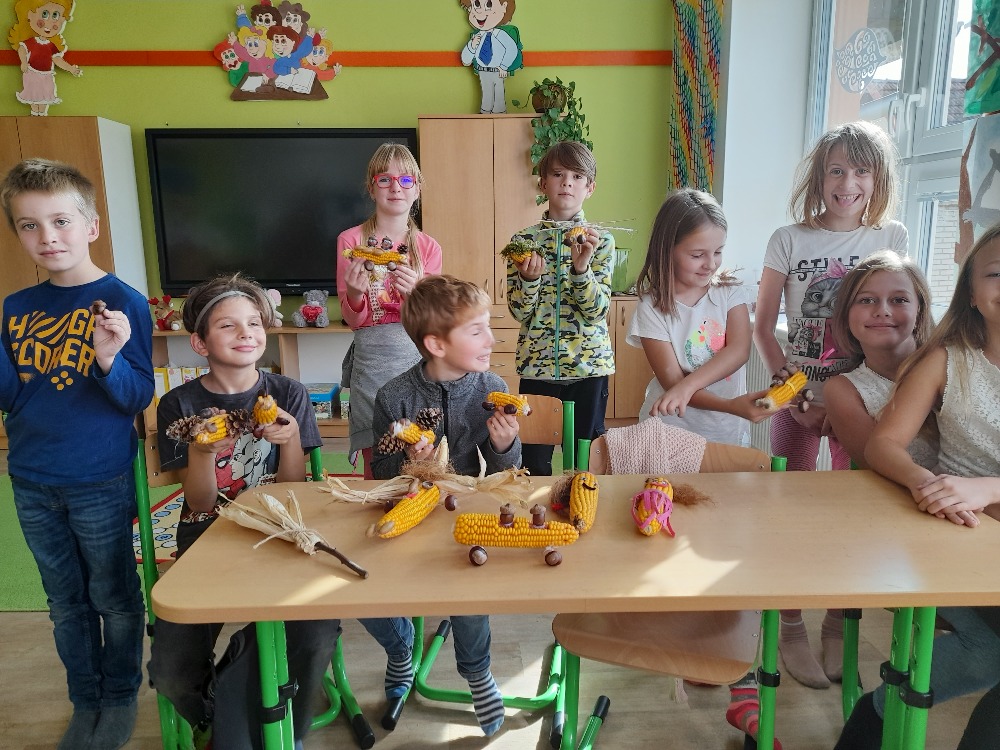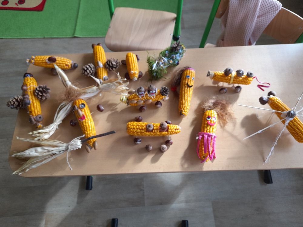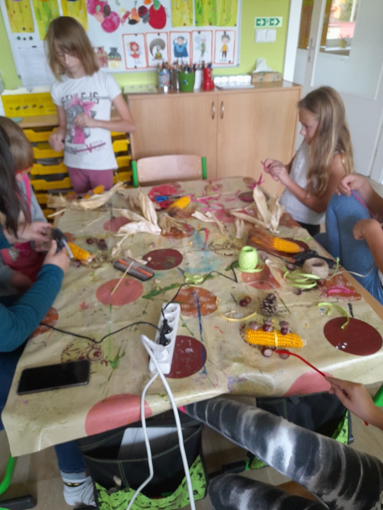 Dozrály nám kukuřice a tak jsme s většími dětmi tvořili různé panáčky, vozíčky, čarodějnice a jiné kreativní výtvory.